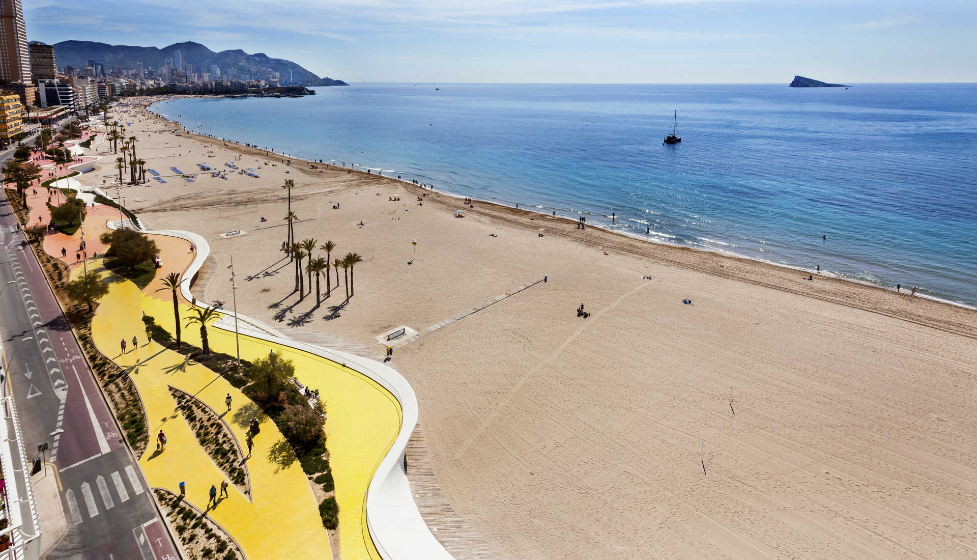 On the other hand, Poniente, or “Sunset Beach,” offers a more laid-back and serene experience. As the longest beach in Benidorm, stretching over three kilometres, it features a beautifully designed, modern promenade. This beach is perfect for families and anyone looking for a quieter day by the sea. The shallow waters are safe for kids, and the slower pace makes it ideal for a relaxing day of sunbathing. Many of our top-rated beachfront holiday apartments in Benidorm are located here, providing a peaceful retreat while still being just a short stroll from the city centre.
